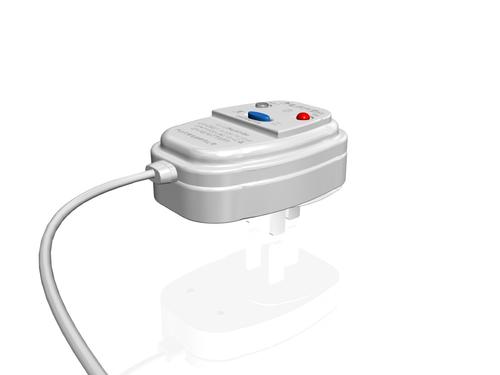 2、漏电保护插头的工作原理是:它能够检测地线回路中的剩余电流,如果电器出现漏电情况,插头会在漏电流尚未达到伤害人体的电流量之前自动切断电源。